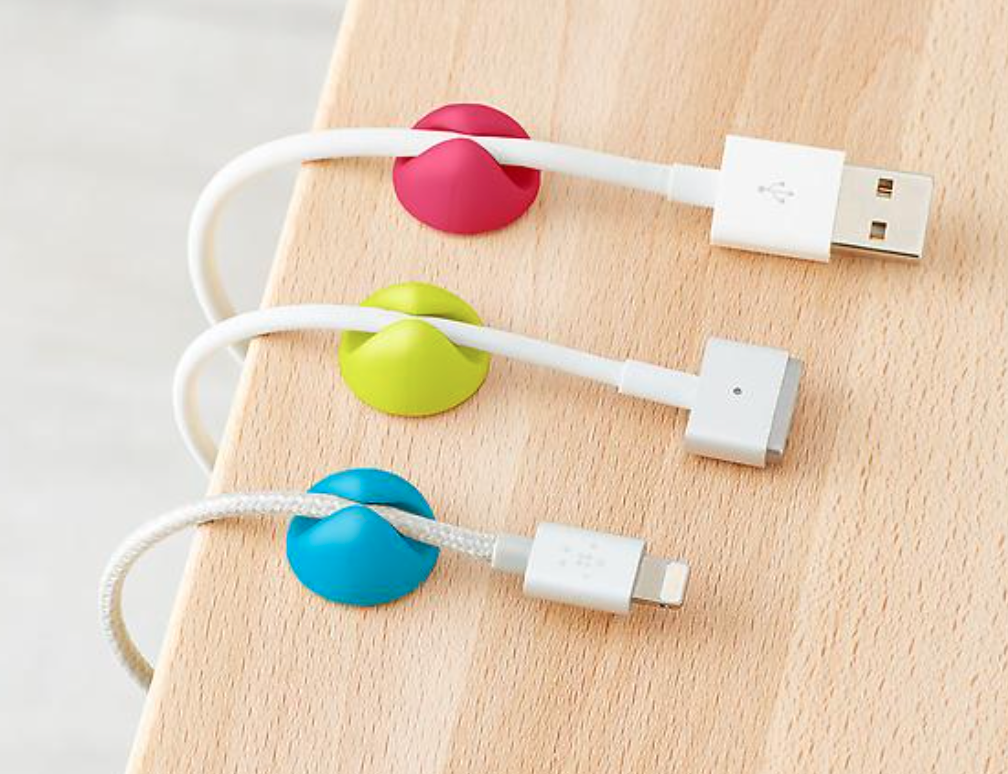 So you have your monitor cable, your USB converter (for iOS users), your tablet charger, your phone charger, and your desk has become a massive mess of wires? Stick those on four corners of your table and keep your life organized.